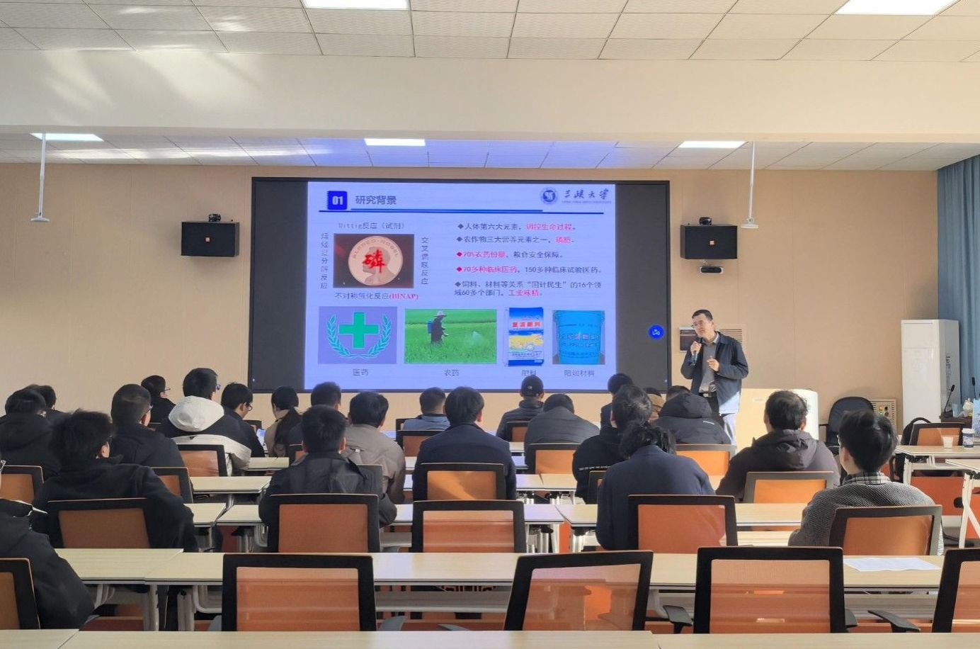 王龙教授首先聚焦有机磷参与的各种化学反应,包括其独特的反应活性、选择性及调控机制,并通过生动的案例,展示有机磷化合物在精细化工和功能材料开发等方面的广泛应用,并探讨了未来可能的研究方向与应用前景。在互动环节,还与到场的青年博士进行了热烈的交流互动。